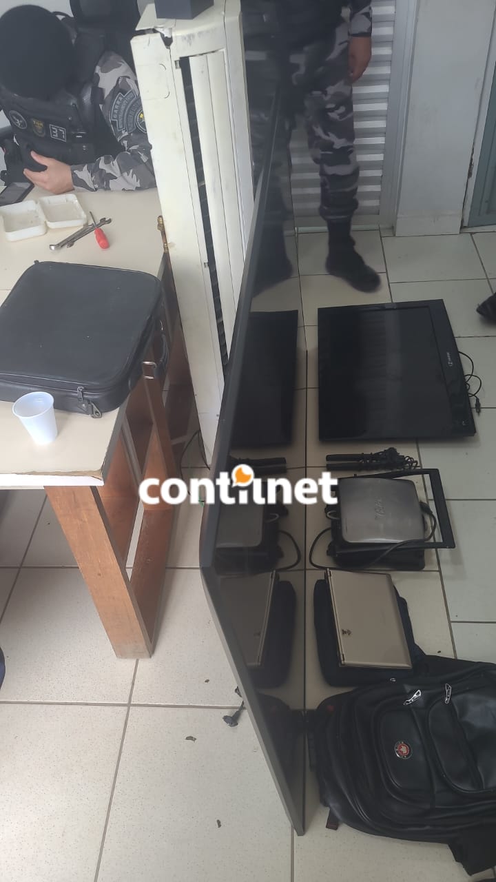 Com a informação sobre os possíveis autores, as equipes se deslocaram até a casa de um dos suspeitos, localizada na Travessa São Francisco, nº 277. Lá, a moradora L. P. informou que os objetos furtados estavam em um apartamento nos fundos, pertencente ao seu filho. Ao chegarem ao local, os policiais avistaram uma televisão Samsung de 75 polegadas pela janela. A moradora, ao ser chamada, confirmou que seu sobrinho, Cleilton, havia deixado a TV no local na madrugada do dia 3.