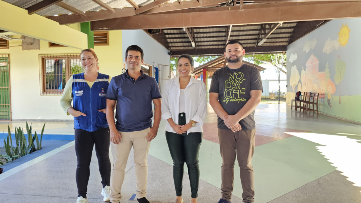 A diretora (de branco), estava acompanhada da coordenadora do abrigo, assim como do Diretor de Planejamento social e Diretor de Assistência Social/Foto: ContilNet