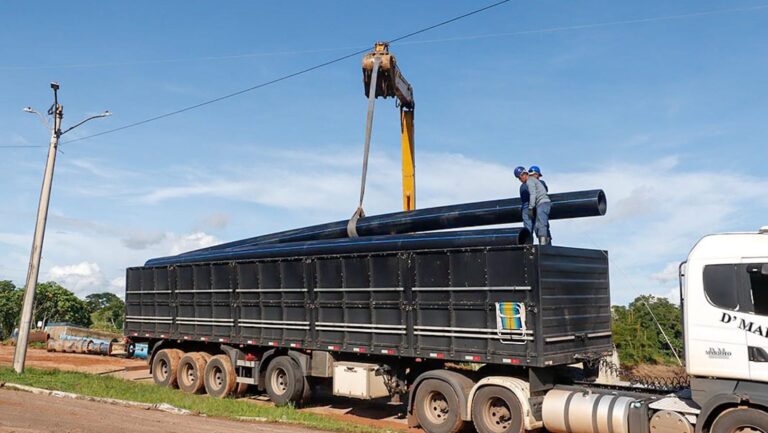 A prefeitura de Rio Branco recebeu, na ultima quarta-feira (26), duas das quatro carretas carregadas com tubos de Polietileno de Alta Densidade (PEAD), que serão utilizados na reconstrução da Estação de Tratamento de Água (ETA) II.