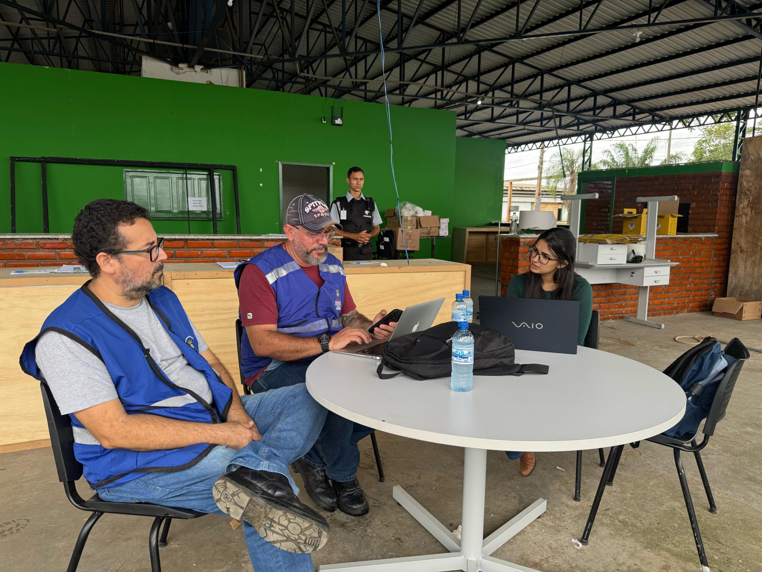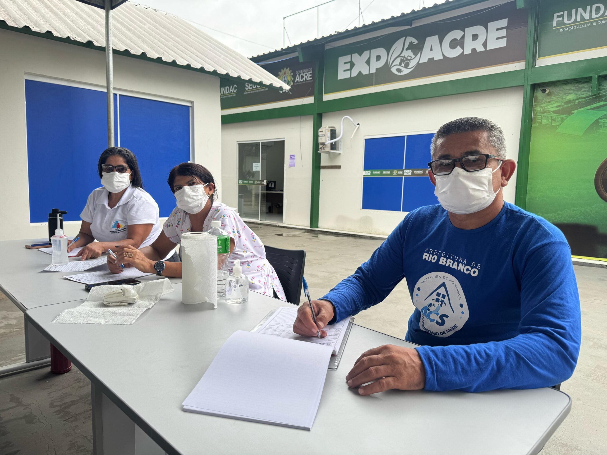 Equipe da saúde e vigilância sanitária unida para garantir acolhimento, segurança e cuidado integral às famílias afetadas pela cheia do rio Acre no Parque de Exposições/Foto: Ascom