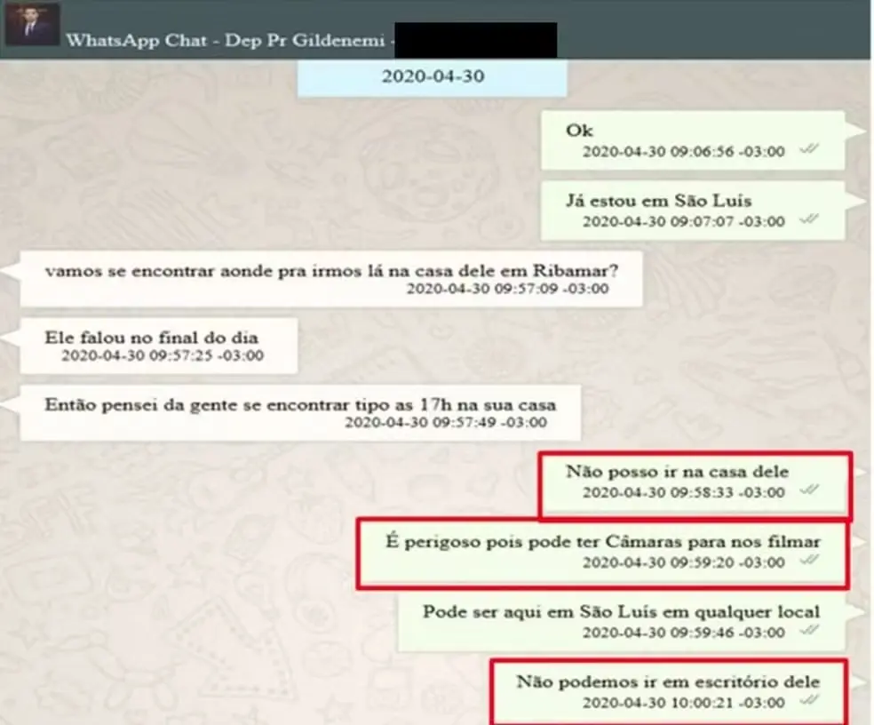Troca de mensagens entre deputados mostra Josimar Maranhãozinho orientando colega a evitar encontros que poderiam ser filmados — Foto: Reprodução