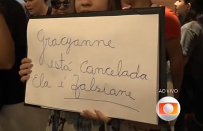 Renata leu mais um cartaz escrito: “Joga para tirar a Gra, Aline, Vini, Vitória, Diego e Dani!”
