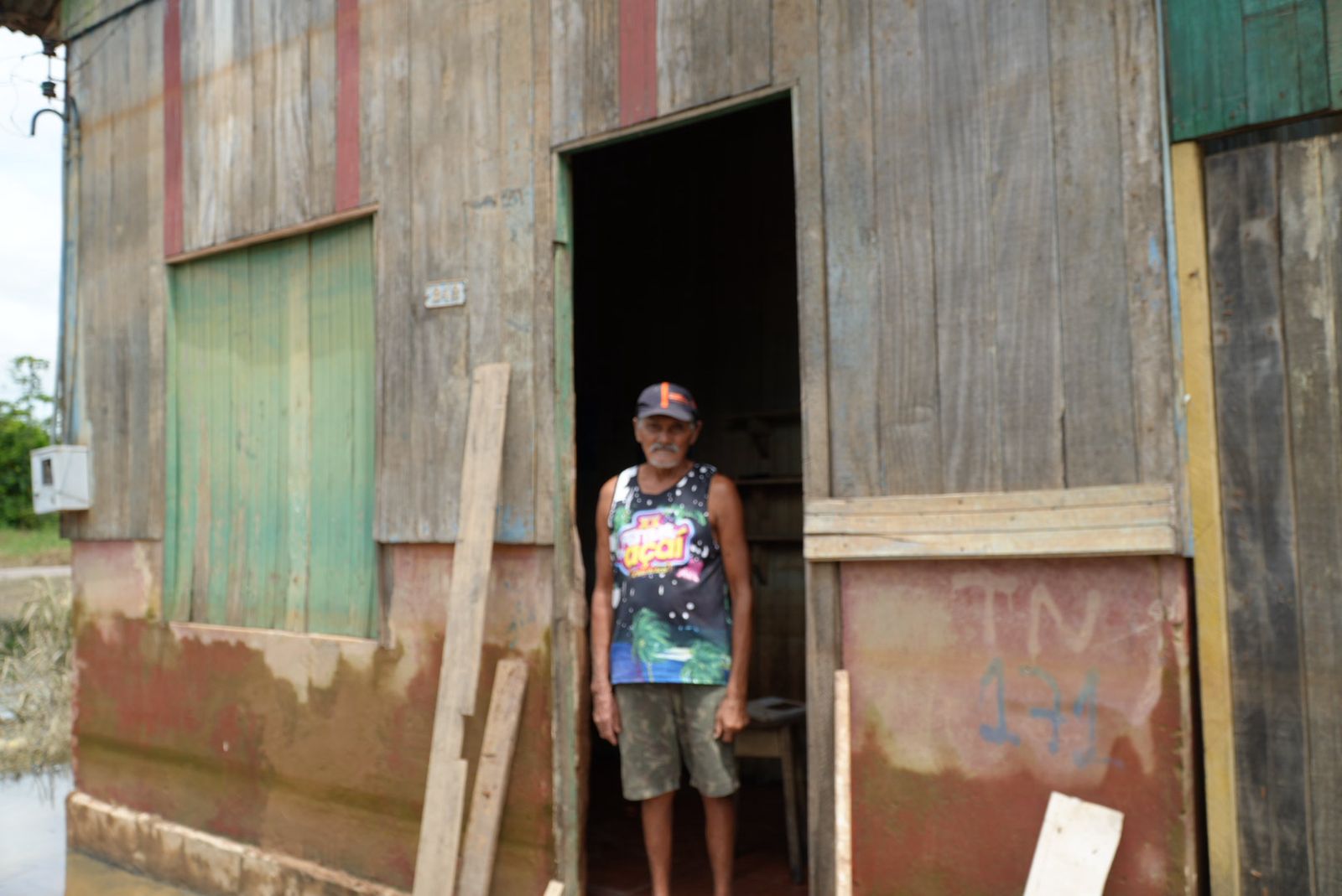 Ele reside no bairro Triângulo, na Travessa Maria de Lurdes, desde os anos 2000. Sua casa foi tomada pelas águas na semana passada.