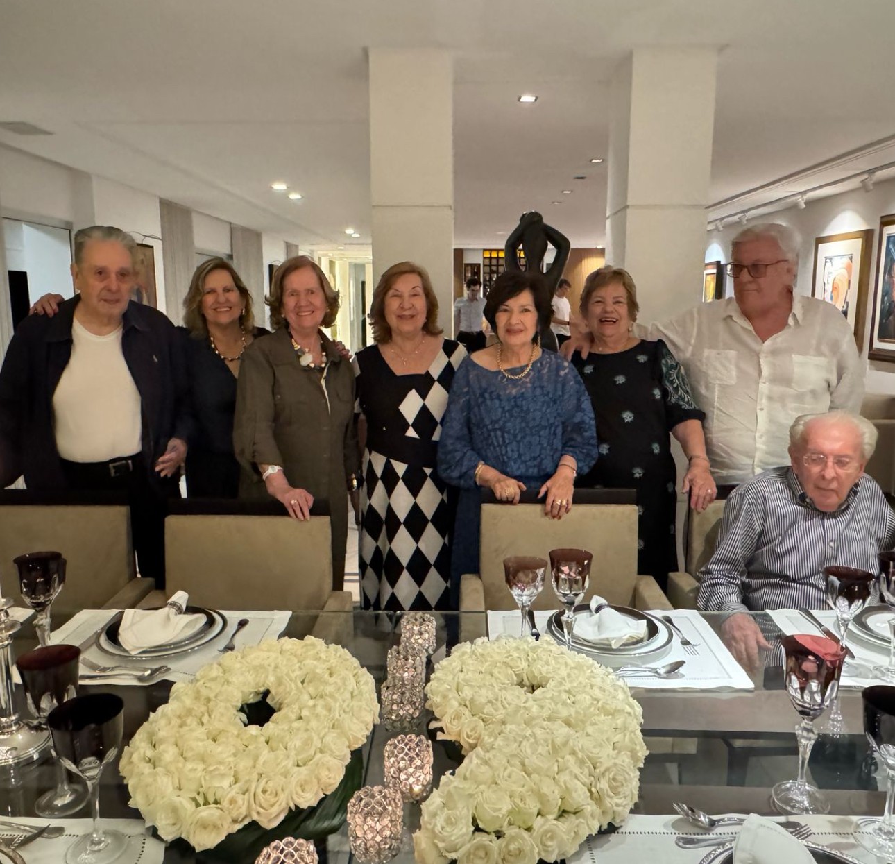 As irmãs Lavocat Mariazinha, Marília e Flavia; o cunhado Amilcar Queiroz e os amigos João Branco e Neli Cruz, ladeando o casal Ilmar e Terezinha Galvão.