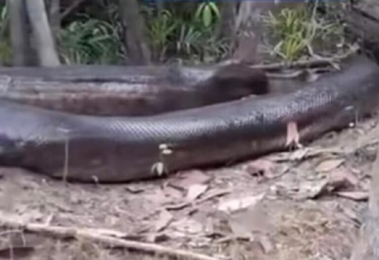 Dois pescadores registraram, com o celular, uma cena impressionante à beira do rio Amazonas: uma sucuri de cerca de 9 metros se movia lentamente pela região. Surpresos com o tamanho do animal, os pescadores acompanharam seu deslocamento até que a serpente desapareceu em uma toca, sumindo completamente de vista.