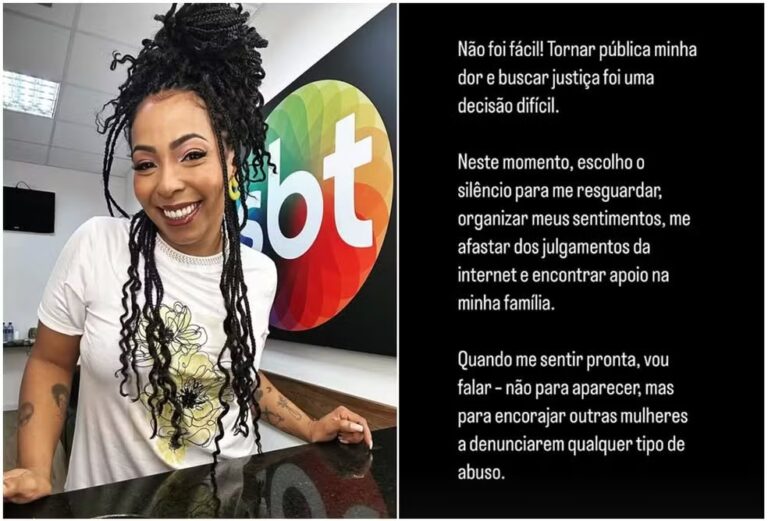 “Neste momento, escolho o silêncio para me resguardar, organizar meus sentimentos, me afastar dos julgamentos da internet e encontrar apoio na minha família. Quando me sentir pronta, vou falar — não para aparecer, mas para encorajar outras mulheres a denunciarem qualquer tipo de abuso”, concluiu.