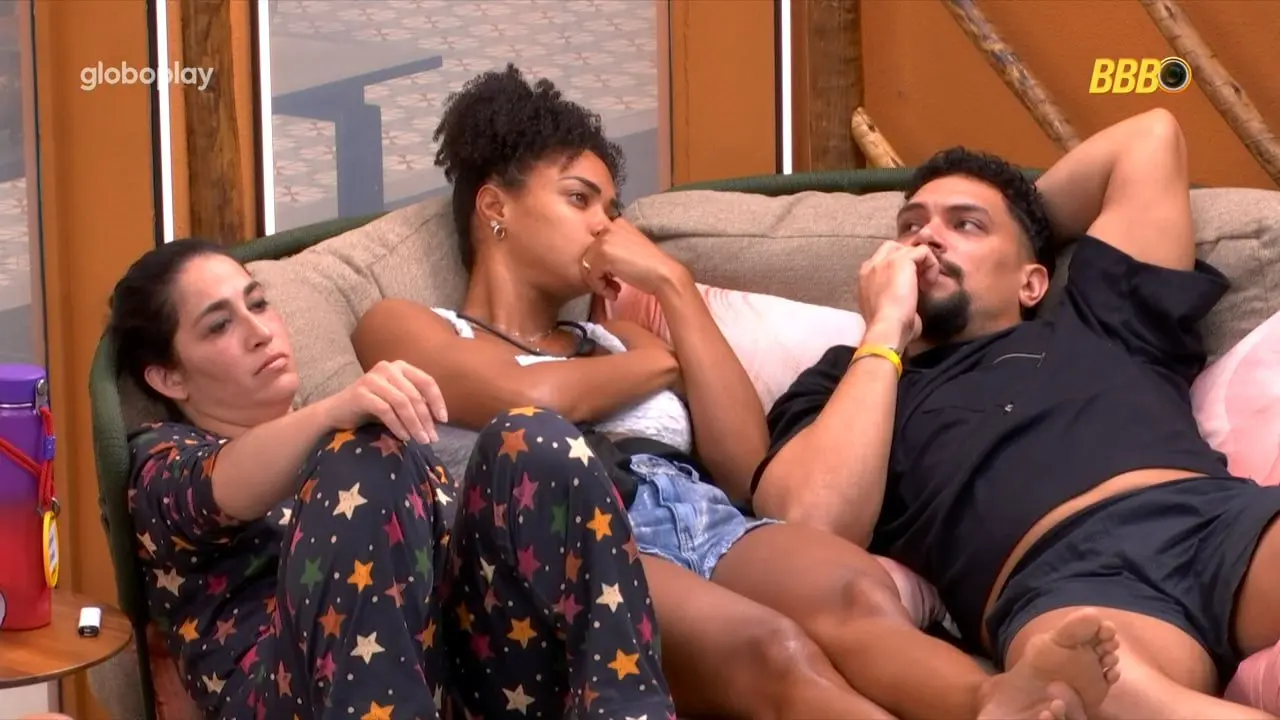 A discussão seguiu com João Gabriel reafirmando sua opinião: “Falei que o jogo de vocês é morno e, para mim, é morno — o seu e do Diego. Mas não disse que vocês têm que mudar o jogo.” Dani retrucou, argumentando que seu jeito mais contido não significava que estava “a passeio”: “Eu só falei que não falo mais alto, tenho cuidado com as palavras, mas isso não quer dizer que não tô jogando.”