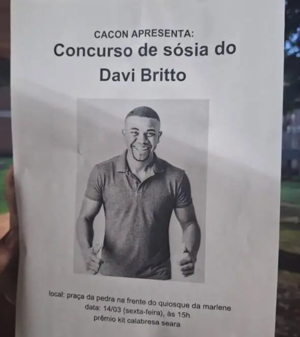 Os estudantes da Universidade Federal do Acre (UFAC) organizam uma divertida competição de sósias do influenciador Davi Brito, marcada para esta sexta-feira (14), às 15h, na Praça da Pedra, em frente ao Quiosque da Marlene, nas dependências do campus Rio Branco.