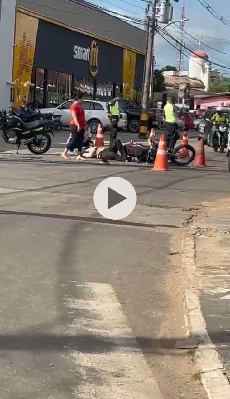 VÍDEO: motociclistas ficam feridos após colisão em rua movimentada de Rio Branco