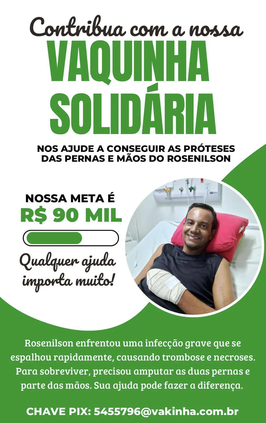 Após enfrentar uma grave infecção, que causou trombose e necrose, sendo necessário a amputação de suas duas pernas e partes da mão, o acreano Rosenilson abriu uma vaquinha solidária para conquistar as próteses dos membros.