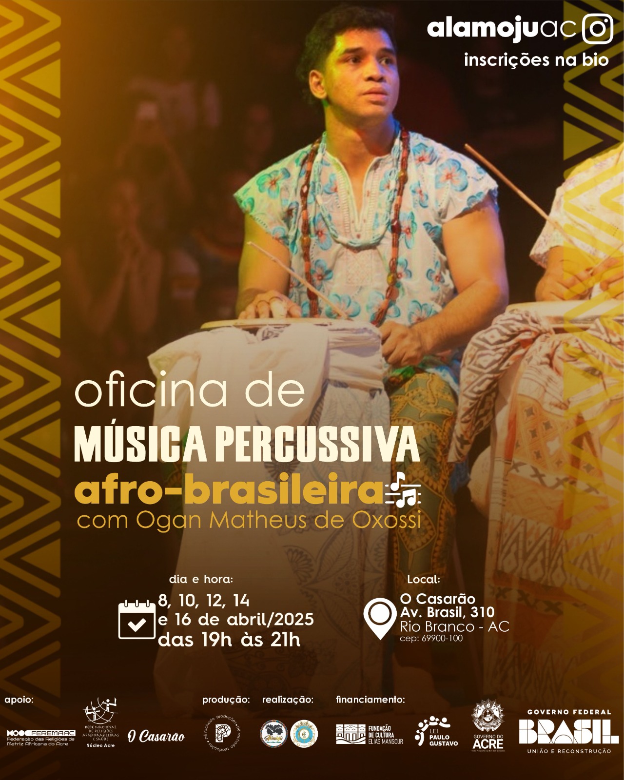 Ministrada pelo Ogan Matheus de Oxóssi, acontece nos dias 8, 10, 12, 14 e 16 de abril, das 19h às 21h, no Casarão (Avenida Brasil, 310, bairro Centro). Para se inscrever acesse: https://forms.gle/997k1QLjpK7M238U6.