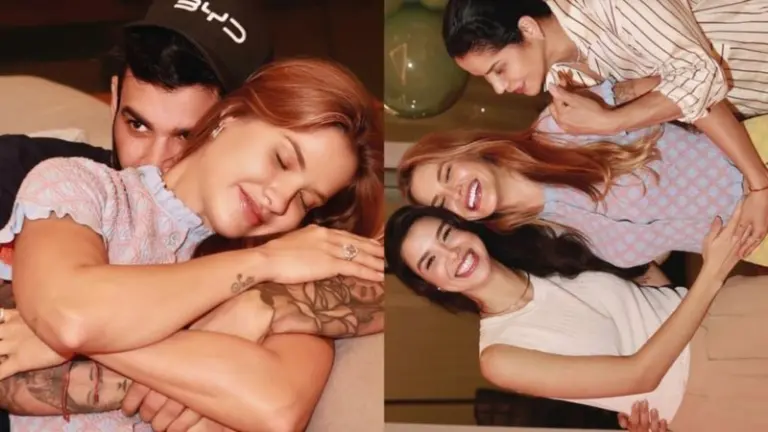 Depois de compartilhar um clique romântico, recebendo carinho do amado, a influenciadora digital publicou um registro ao lado da irmã e da mãe. Com elas, Andressa Suita surgiu sorridente e com a mão na barriga.