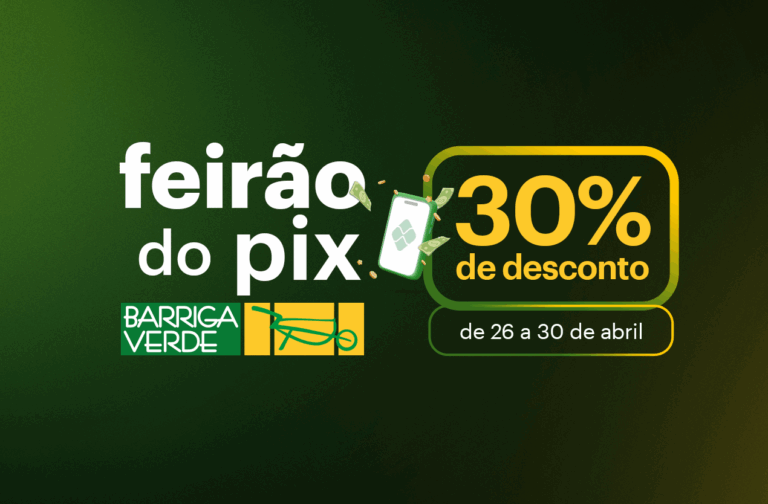 O Barriga Verde realiza, entre os dias 26 e 30 de abril, o Feirão do Pix, uma campanha promocional que oferece 30% de desconto em uma seleção de produtos, exclusivamente para clientes que optarem pelo pagamento via Pix.