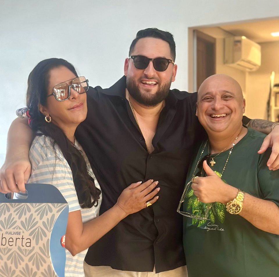 Valquiria Assis celebrou mais um giro no calendário com o “Baile do Havaí da Val”. A cunhada Helena com o marido Carlos Medeiros compareceram devidamente a caráter ao animado evento.