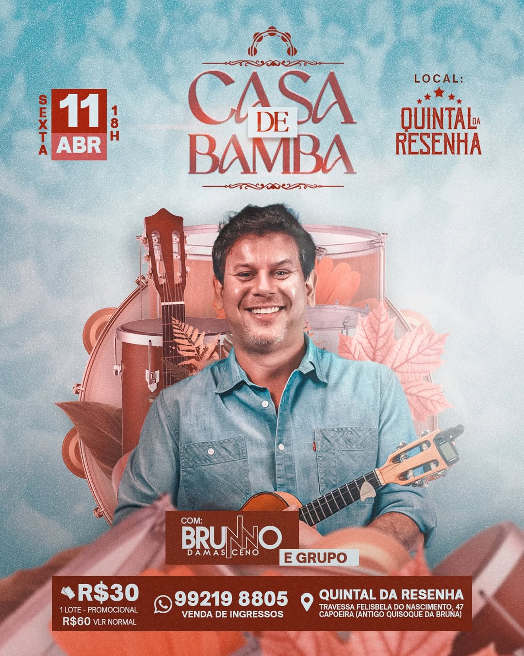 A tradicional roda de samba Casa de Bamba já tem data e local confirmados para a edição de abril. Enquanto a Casa do Rio passa por reformas, o evento será realizado no Quintal da Resenha, localizado na Capoeira, antigo Quiosque da Bruna (Travessa Felisbela do Nascimento, 47).