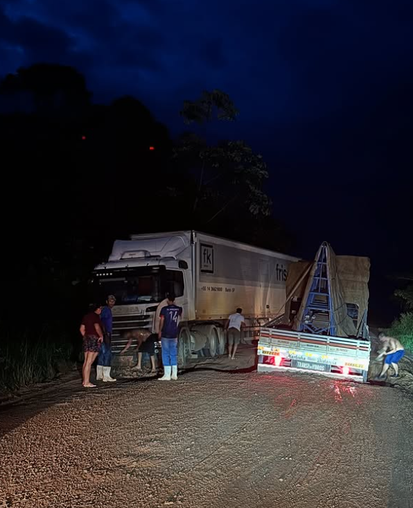 Populares que passavam pelo local tentaram ajudar na remoção dos caminhões, mas até o momento os veículos continuam atolados. Muitos permanecem no local aguardando uma solução para liberar a estrada.