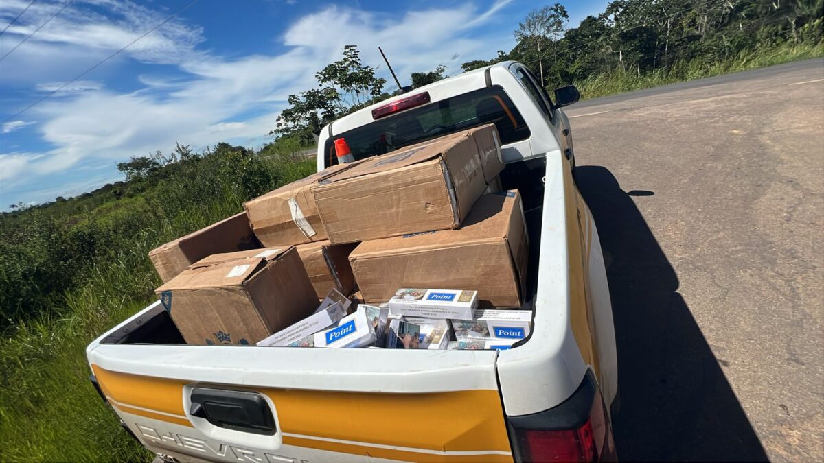 Cigarros estavam escondidos em meio a outros produtos no interior do veículo abordado na BR-364/Foto cedida