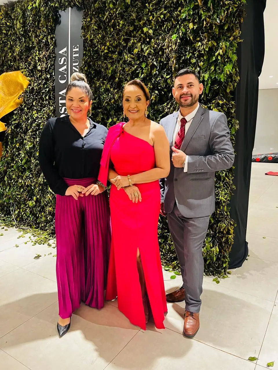 Coordenadora oficial do concurso Meire Manaus com Mariana Klemer e Raphael Batista, os apresentadores do concurso.