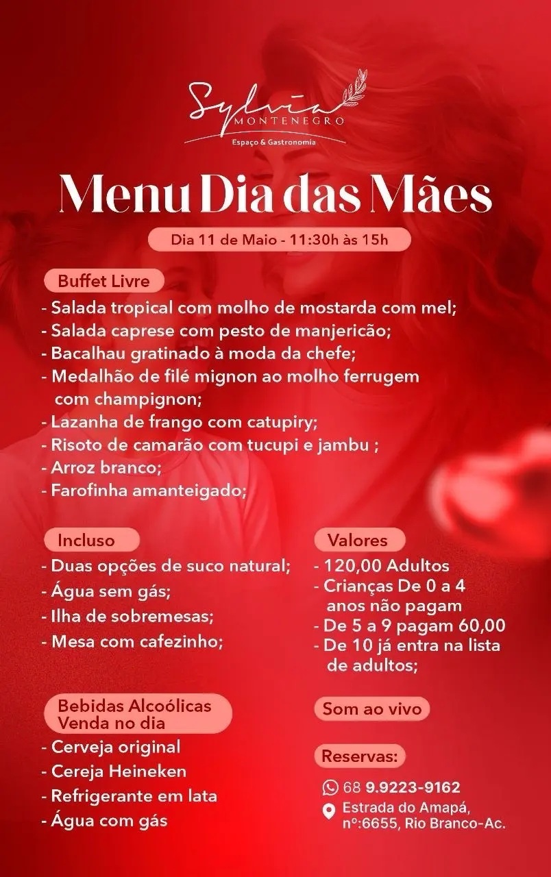 O Dia das Mães está chegando, e nada melhor do que celebrar esse momento especial em um lugar à altura do amor de mãe. O Espaço Sylvia Montenegro preparou uma experiência inesquecível, com um menu exclusivo e pratos de dar água na boca, pensados especialmente para esse dia cheio de emoção.