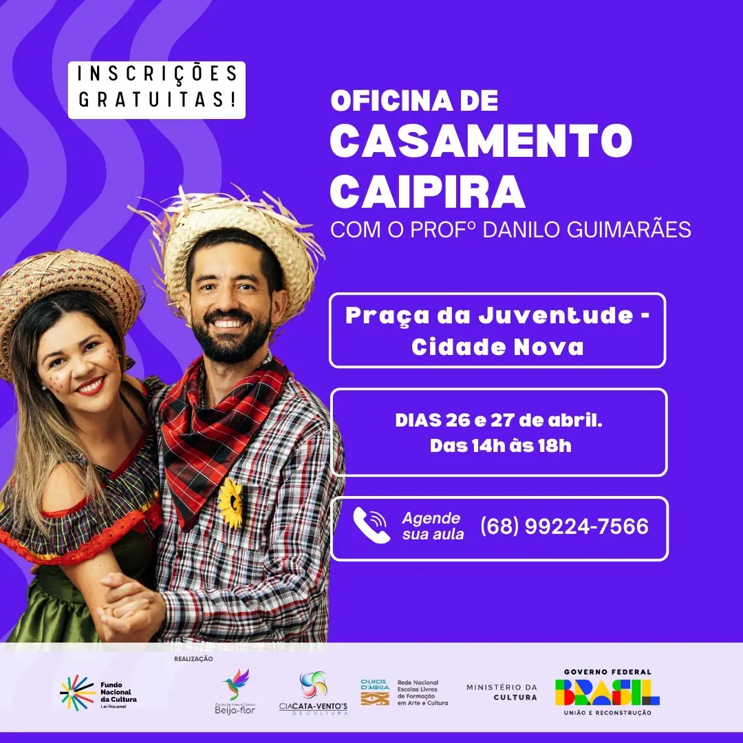 Todas as oficinas são gratuitas e com vagas limitadas! Garanta já a sua participação entrando em contato pelo número de cada oficina ou pelas redes sociais: