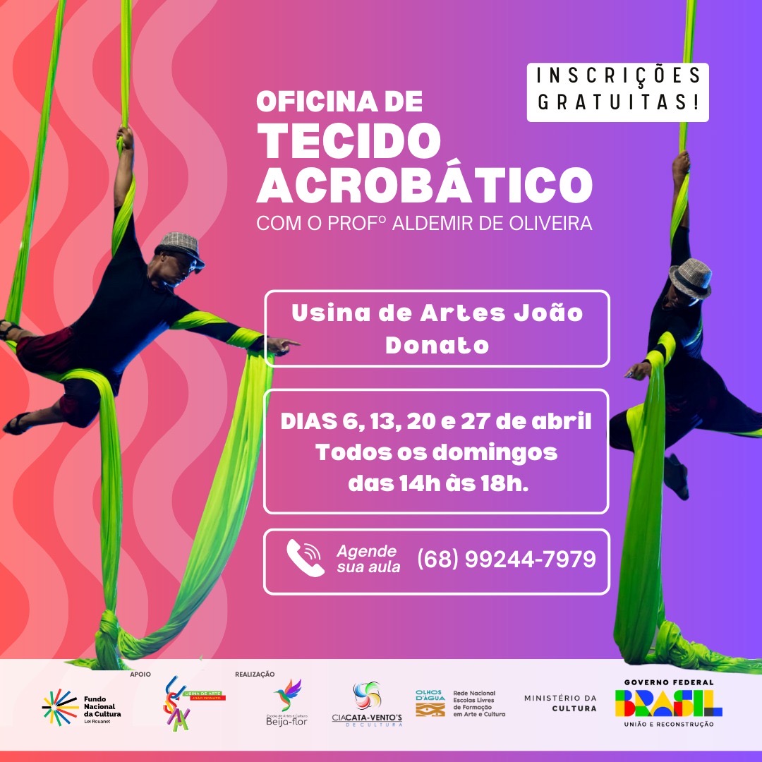 A Escola de Arte e Cultura Beija-Flor e a Cia Cata-Ventos de Cultura estão com inscrições abertas para diversas oficinas culturais gratuitas durante o mês de abril. A ação visa oportunizar que pessoas tenham chance de aprender, se aperfeiçoar e se conectar com o universo da arte e da criatividade.