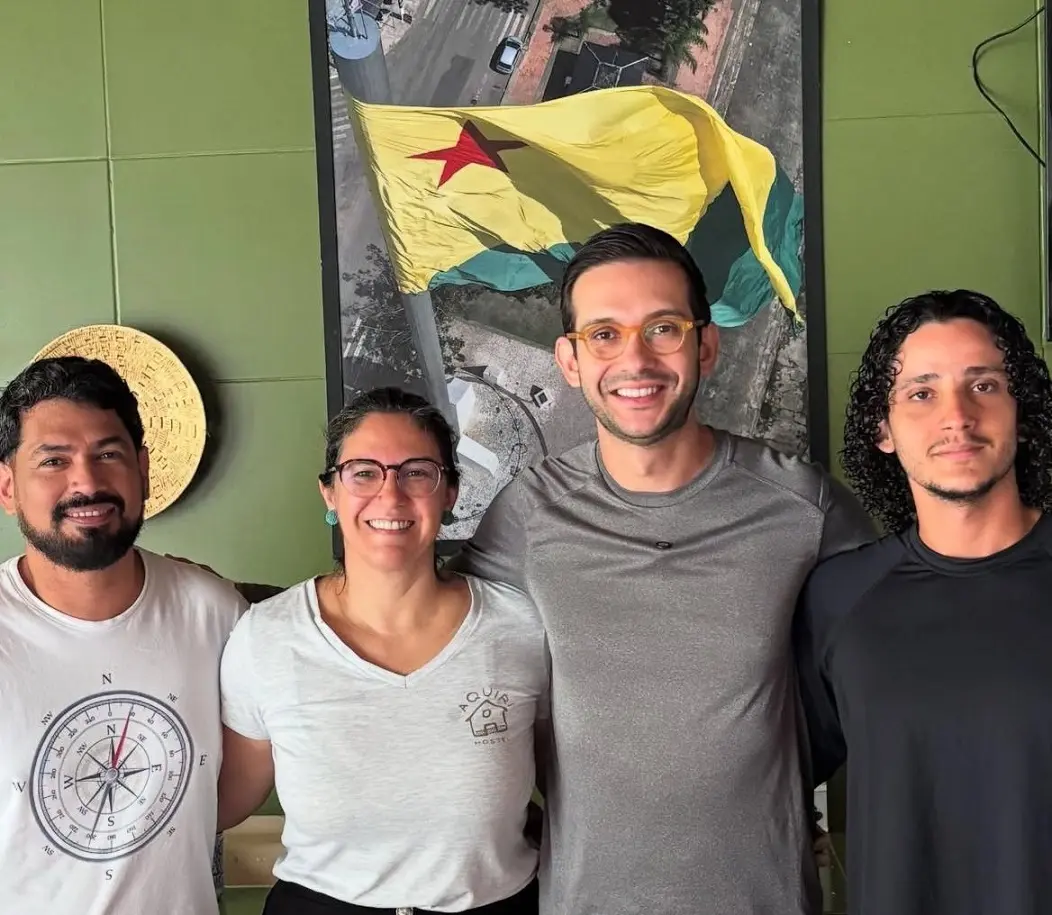 O jornalista e youtuber Matheus Boa Sorte, apresentador do programa Boa Sorte Viajante esteve em Rio Branco no início de abril e aqui ficou hospedado no Aquiri Hostel, tendo como anfitriões os queridos Naldo e Bárbara Huberty. Com mais de 600 mil seguidores no Youtube, ele veio acompanhado pelo repórter cinematográfico Rodrigo Freitas, o Mãozinha, para gravar uma série de reportagens sobre pontos turísticos locais, que irão ao ar a partir de agosto. O conteúdo estará também na TV Brasil e no Travel Box Brasil. Na foto, a dupla com a Bárbara e Gleison Xavier.