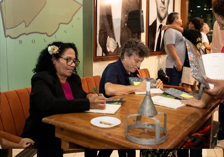 O evento teve uma programação cultural vibrante, com música ao vivo por Jamys Lima, performance teatral com Thales Vasconcelos e Deusa Maria, além da participação especial do Coral de Estudantes da UFAC regido pelo maestro Domingos Bueno. A noite terminou com sessão de autógrafos — e muitos aplausos para o autor e a protagonista dessa linda história. As fotos são de Marcelo Dagnoni.
