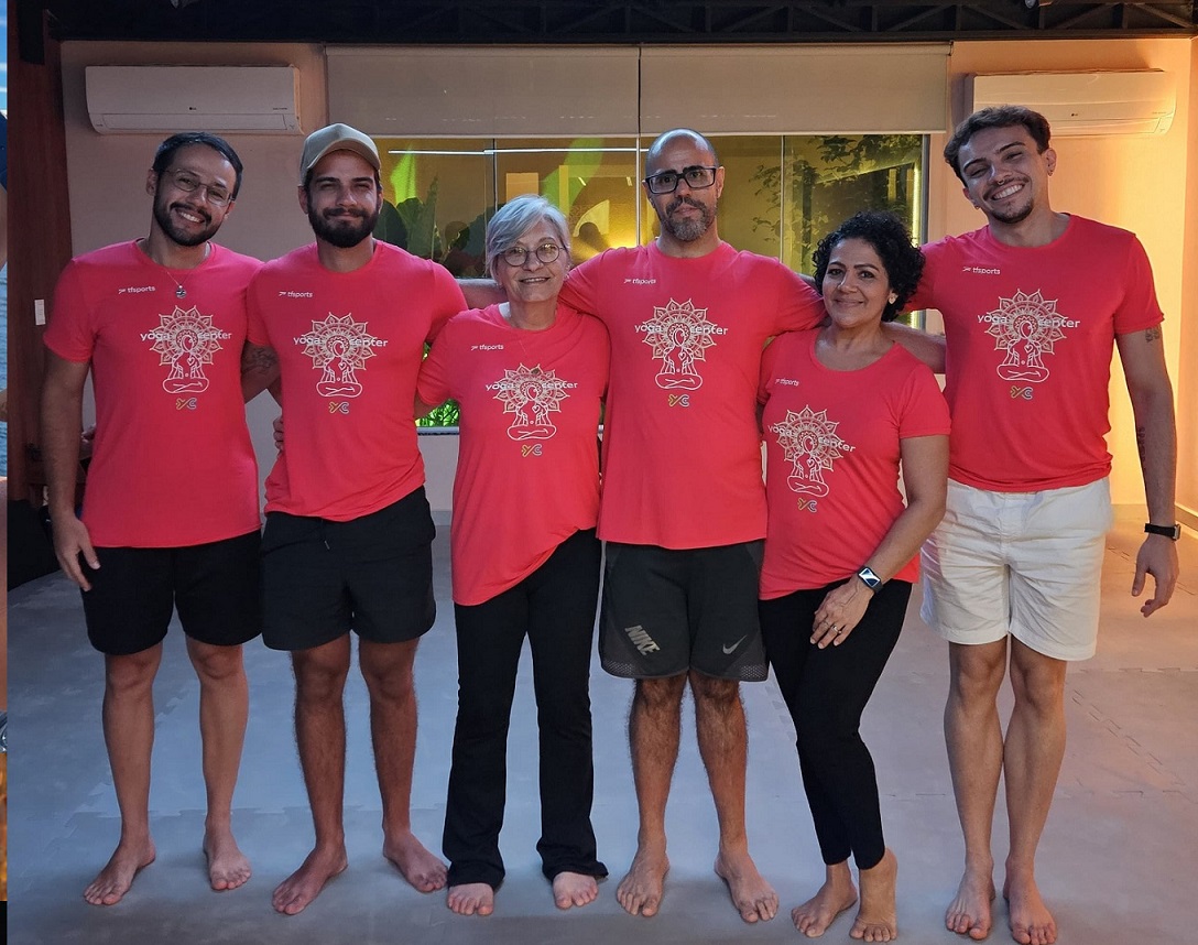 A querida professora de yoga Helô Biasoli está em terras acreanas novamente. Veio dessa vez para a comemoração de segundo aniversário de inauguração do Yoga Center, ocorrido no dia 5 de abril, e para rever familiares e amigos. Ela ficará por um mês em Rio Branco e retornará à Portugal, onde reside, no dia 2 de abril. Na foto, ela com a equipe do Yoga Center: Alan Dantas, Carlos Alves, Daniela Lopes, Alyx Dantas e Daniel Andrade.