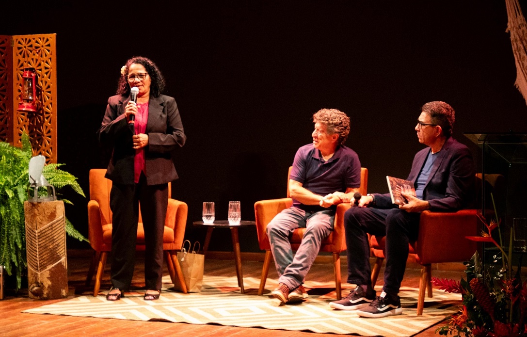 O evento teve uma programação cultural vibrante, com música ao vivo por Jamys Lima, performance teatral com Thales Vasconcelos e Deusa Maria, além da participação especial do Coral de Estudantes da UFAC regido pelo maestro Domingos Bueno. A noite terminou com sessão de autógrafos — e muitos aplausos para o autor e a protagonista dessa linda história. As fotos são de Marcelo Dagnoni.