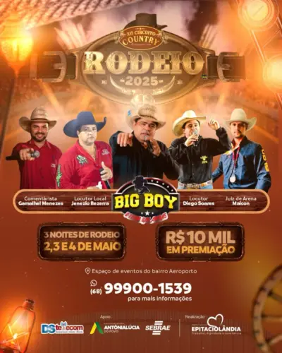 Serão 3 noites de pura adrenalina, com montarias emocionantes e disputa acirrada entre os melhores competidores da região. E o melhor: R$ 10 mil em premiação esperam pelos grandes destaques da arena!