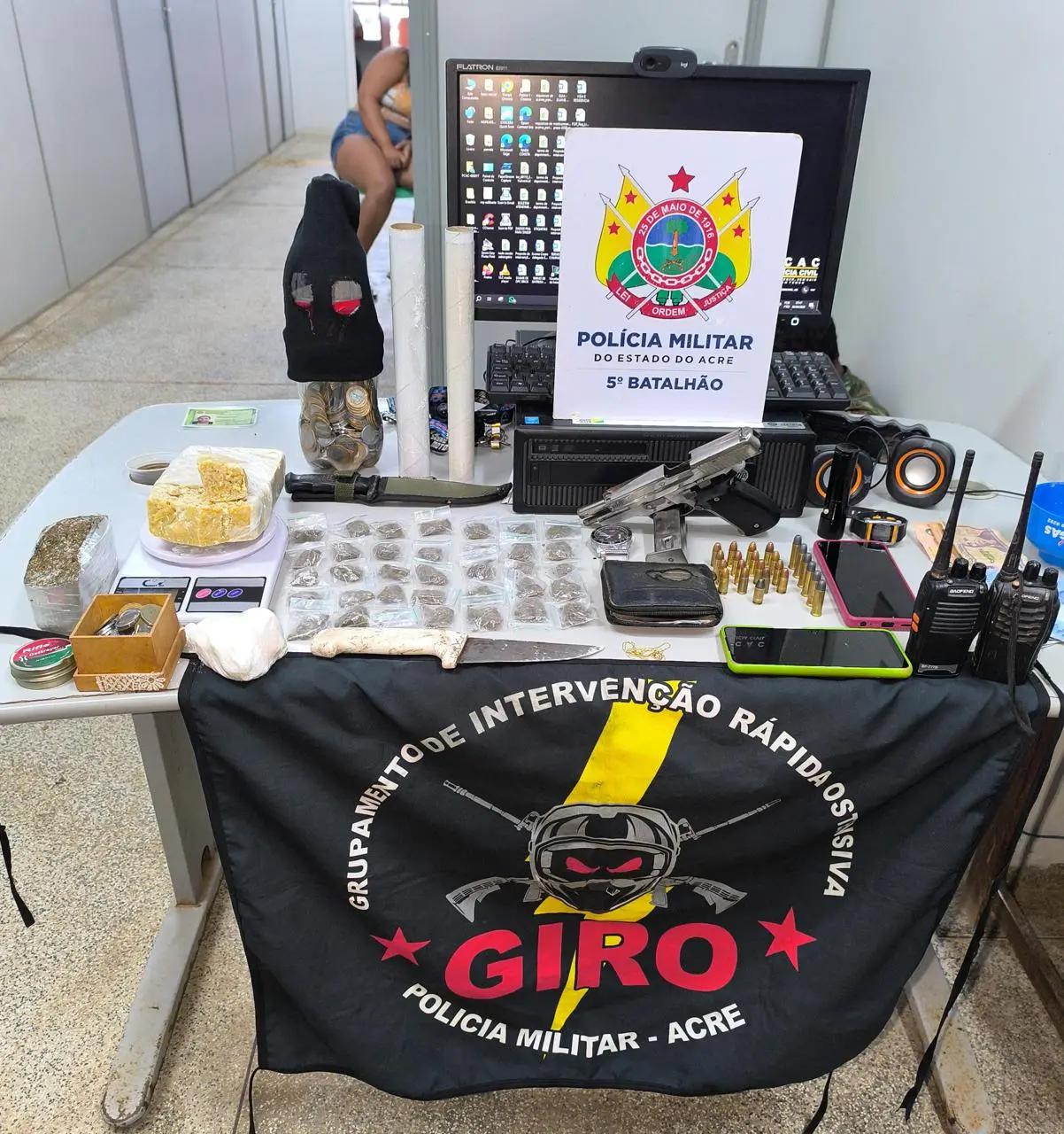 Uma operação realizada na manhã desta segunda-feira, 28, pelo Grupo de Intervenção Rápida e Ostensiva (GIRO) do 5º Batalhão da Polícia Militar resultou na prisão de dois integrantes do Primeiro Comando da Capital (PCC) e na apreensão de drogas, armas, munições e dinheiro em Epitaciolândia, no Acre.
