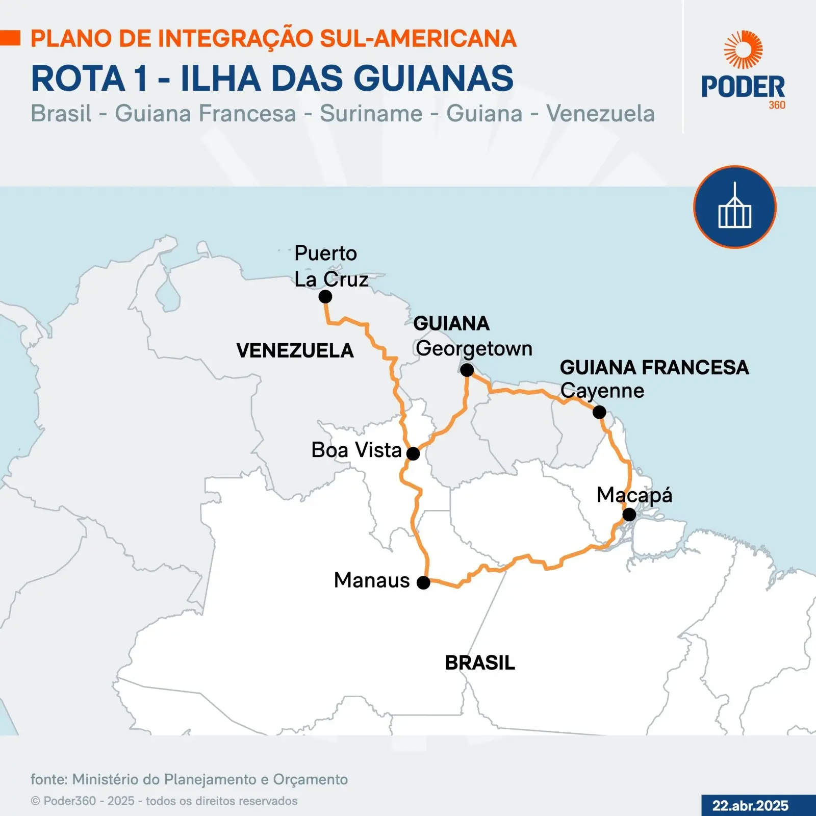 A chamada Rota 1, passando pela ilha das Guianas, tem como objetivo destravar a comercialização de alimentos e bens de consumo final produzidos no Brasil para os países do norte do continente e do Caribe. No sentido da importação, o trajeto servirá para o escoamento da compra de petróleo da Margem Equatorial e de energia elétrica da Venezuela.