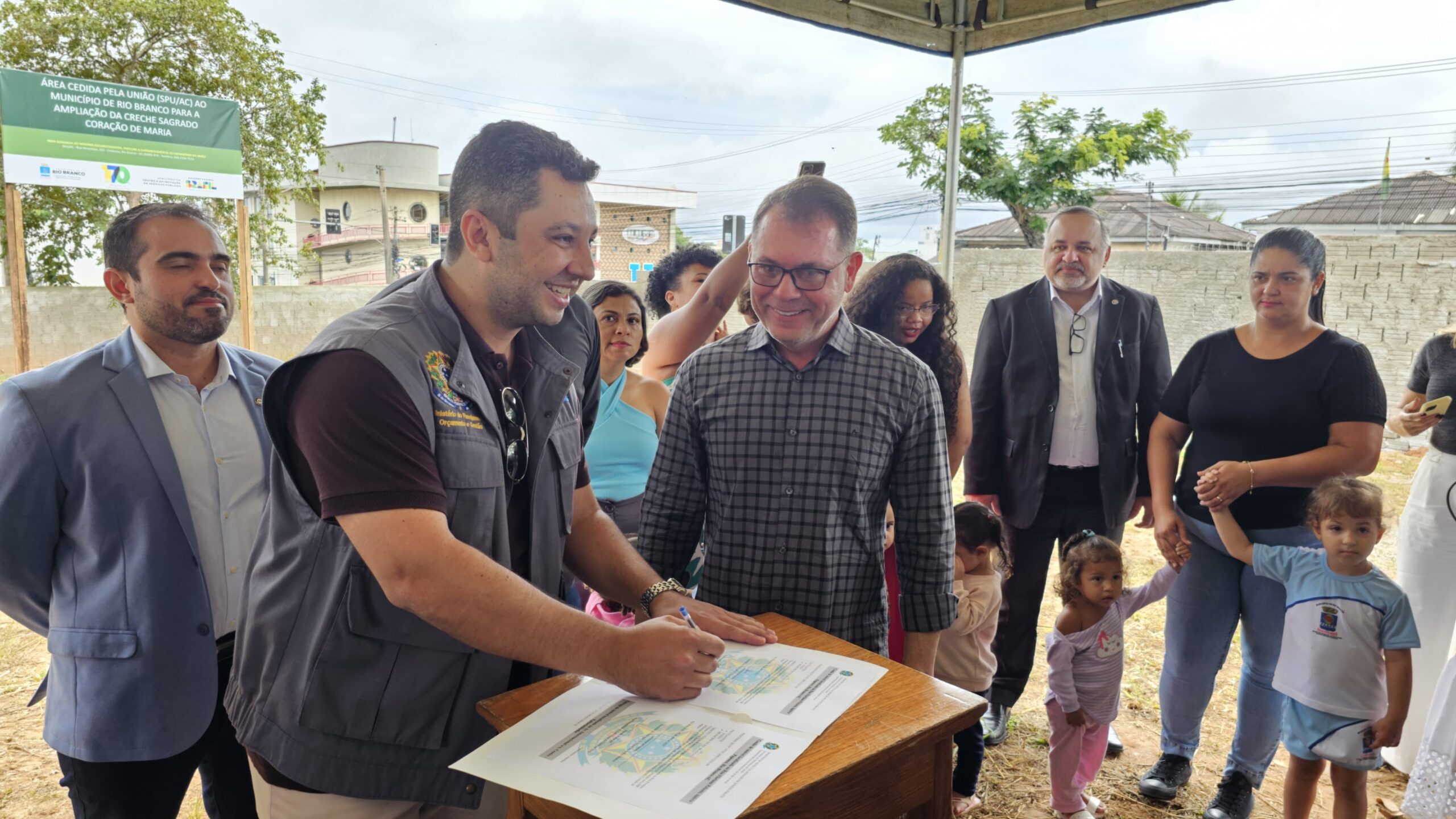 A Prefeitura de Rio Branco, em conjunto com a União, assinou um termo de cessão de um terreno para a ampliação da creche Sagrado Coração de Maria.