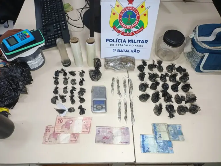 Além das drogas, os policiais apreenderam uma balança de precisão digital, potes plásticos, rolos de plástico filme e uma quantia em dinheiro em espécie. Segundo os agentes, o material é comumente utilizado para o preparo e a comercialização de entorpecentes.