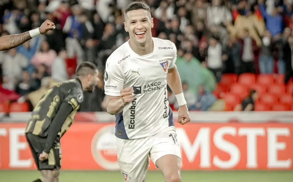 Arce comemora gol da LDU sobre o Deportivo Táchira pela Libertadores (Foto: Divulgação / LDU)