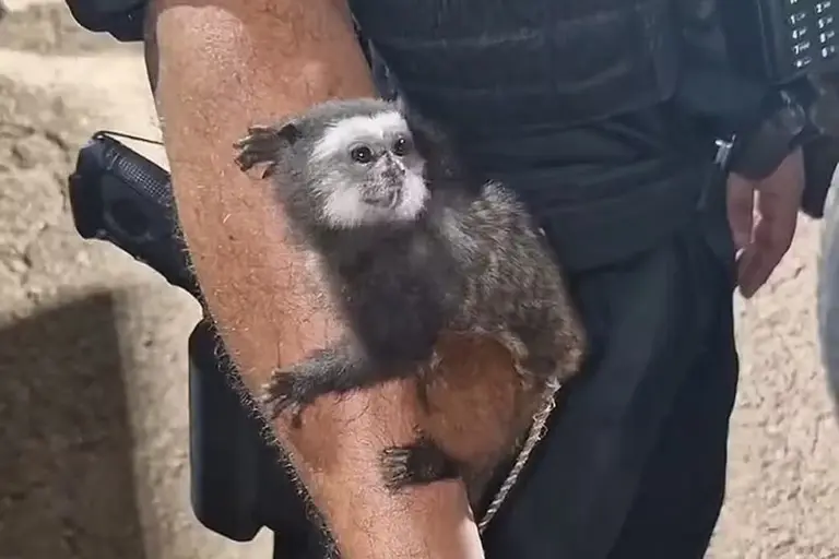 Ao averiguar um cômodo da residência, a polícia encontrou um macaco em cativeiro. A mulher, o filho dela e dois comparsas foram presos em flagrante e todo o material foi apreendido.
