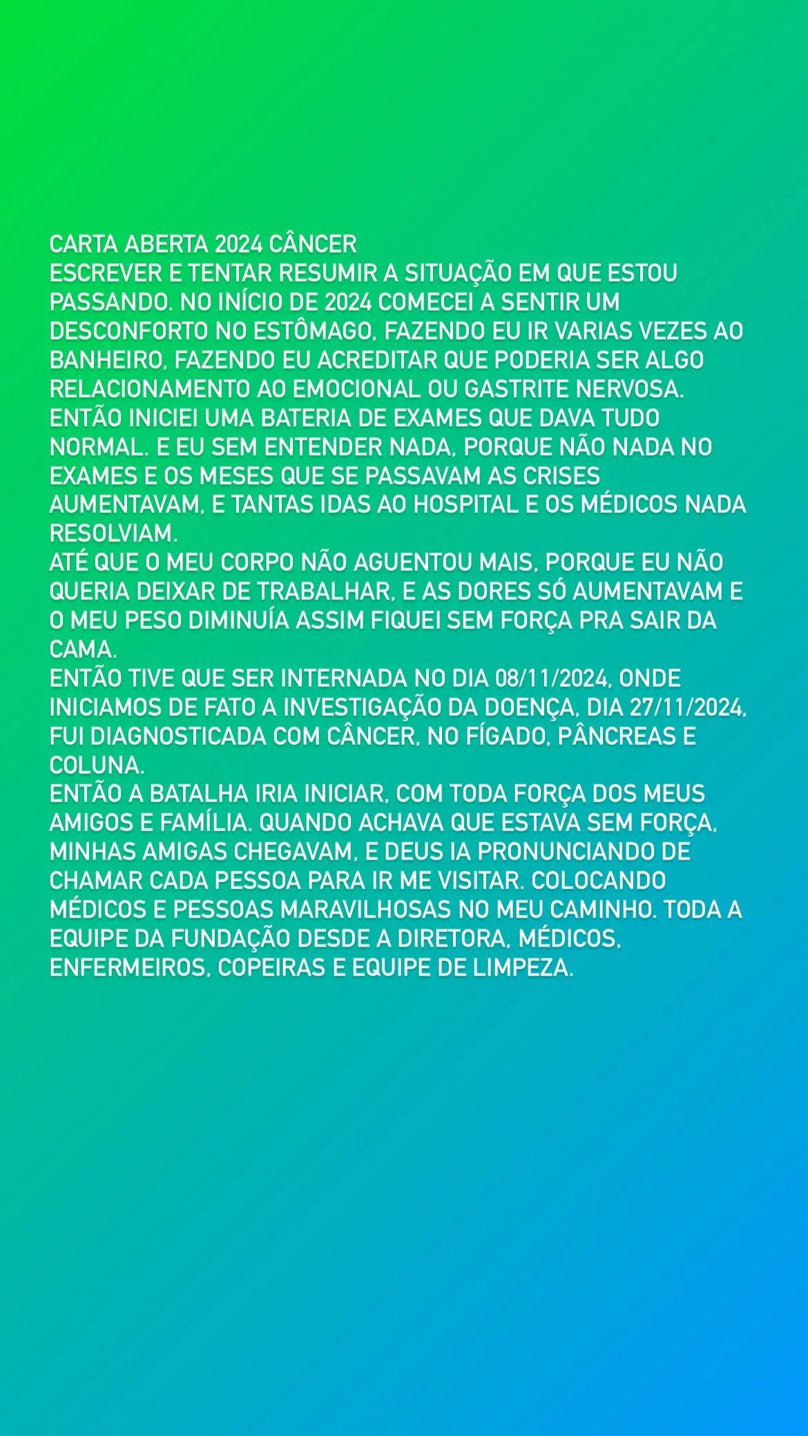 Amigos, familiares e até desconhecidos têm se mobilizado para ajudar, compartilhando a vaquinha nas redes sociais e incentivando doações, pois precisa de apoio para cobrir despesas com exames, medicamentos e procedimentos médicos essenciais. A vaquinha virtual surge como uma esperança para que ela possa seguir com o tratamento sem interrupções.. Quem quiser contribuir pode acessar o link da arrecadação e fazer sua parte nessa corrente do bem.