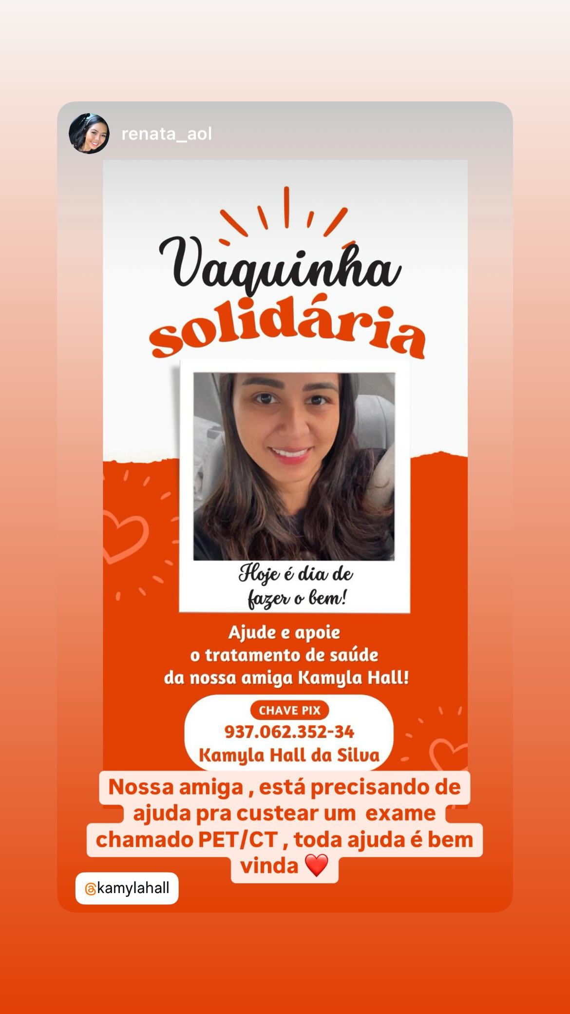 A campanha reforça a importância da empatia e do apoio coletivo em momentos de dificuldade. Qualquer valor pode ajudar Kamyla a continuar seu tratamento e seguir com esperança.