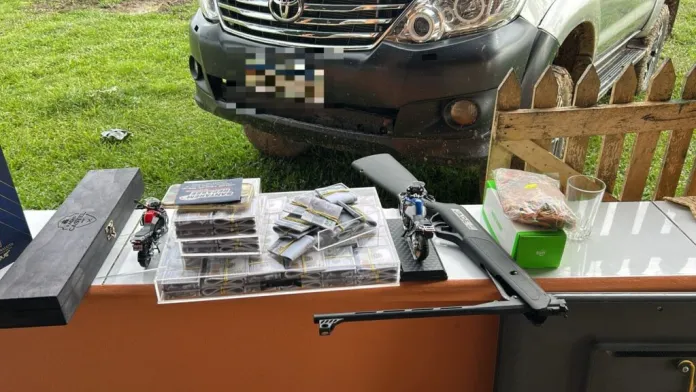 Durante a ação, os policiais prenderam duas pessoas em flagrante. No local, também apreenderam uma grande quantidade de dinheiro falso, celulares, veículos e outros bens adquiridos com recursos oriundos dos crimes. Apesar do cerco, o principal alvo da operação conseguiu fugir pela mata e ainda está sendo procurado pelas forças de segurança.
