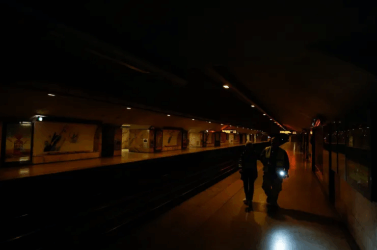 Estação de metrô em Lisboa durante apagão nesta segunda-feira (28) • Adri Salido/Getty Images
