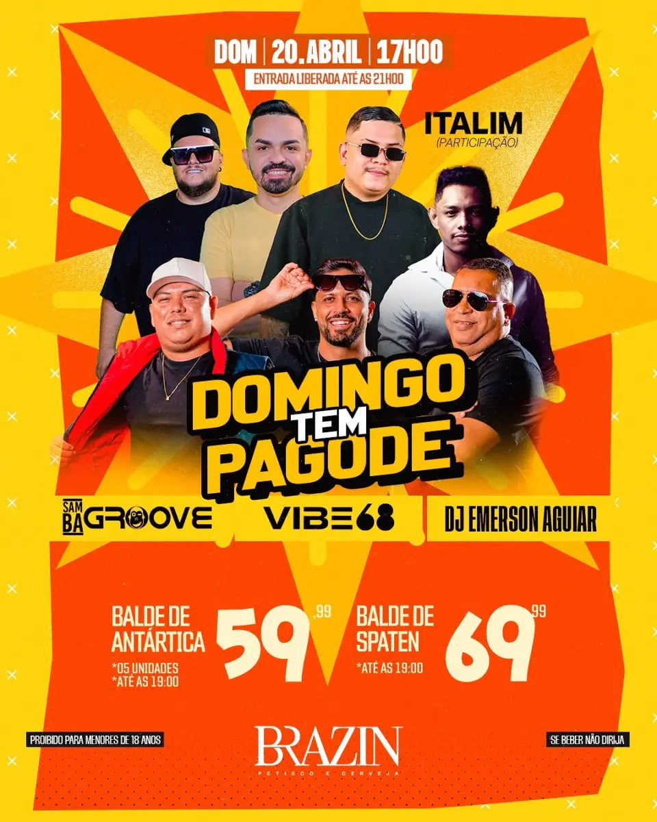 O Brazin vai continuar aberto no domingo, agora eu pergunto pra vocês, o que vai ter por lá?! É isso mesmo, domingo tem pagode!!