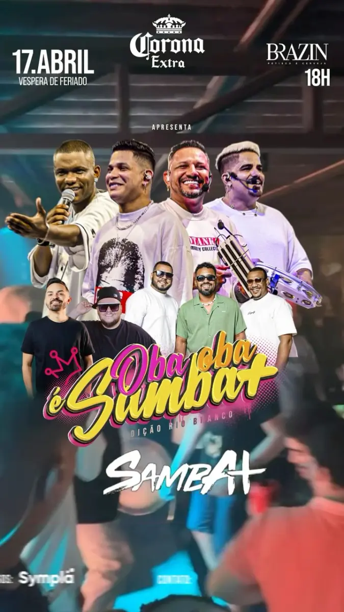 O Oba Oba Samba tá voltando pra Rio Branco pra matar a saudade de vocês! A produção fica por conta da galera do Brazin, então se você gosta dos pagodinhos de lá pode ser uma alternativa muito boa pra essa semana.