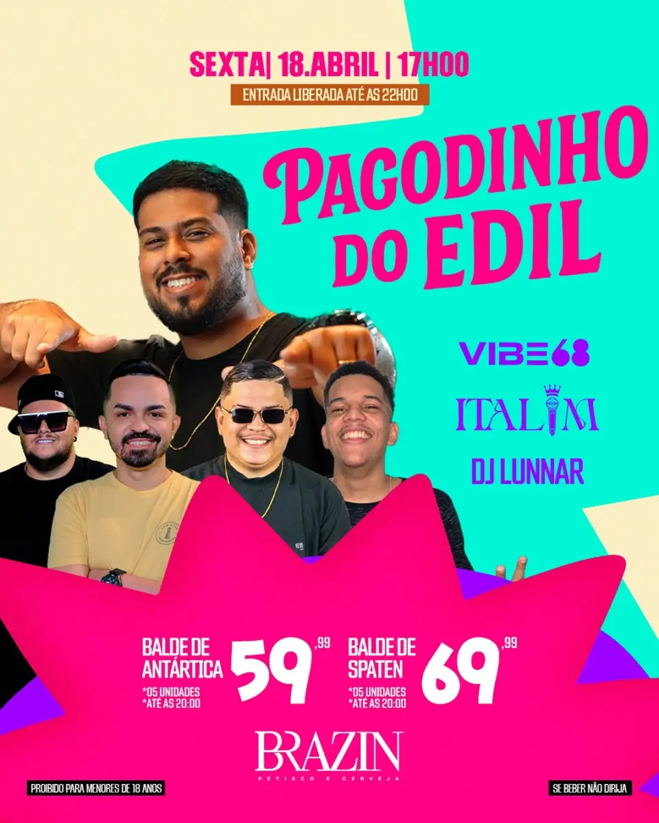 Agora se a tua vibe é mais pra um pagodinho, o teu lugar você já sabe onde é, pode pedir aquele carro no app direto pro Brazin com o pagodinho do Edil!