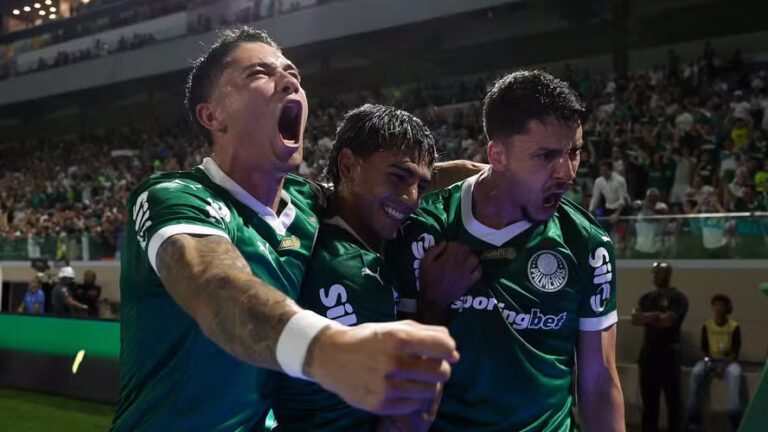 Jogadores do Palmeiras comemoram gols contra o Corinthians, pelo Brasileirão 2025/Foto: Cesar Greco/Palmeiras/by Canon