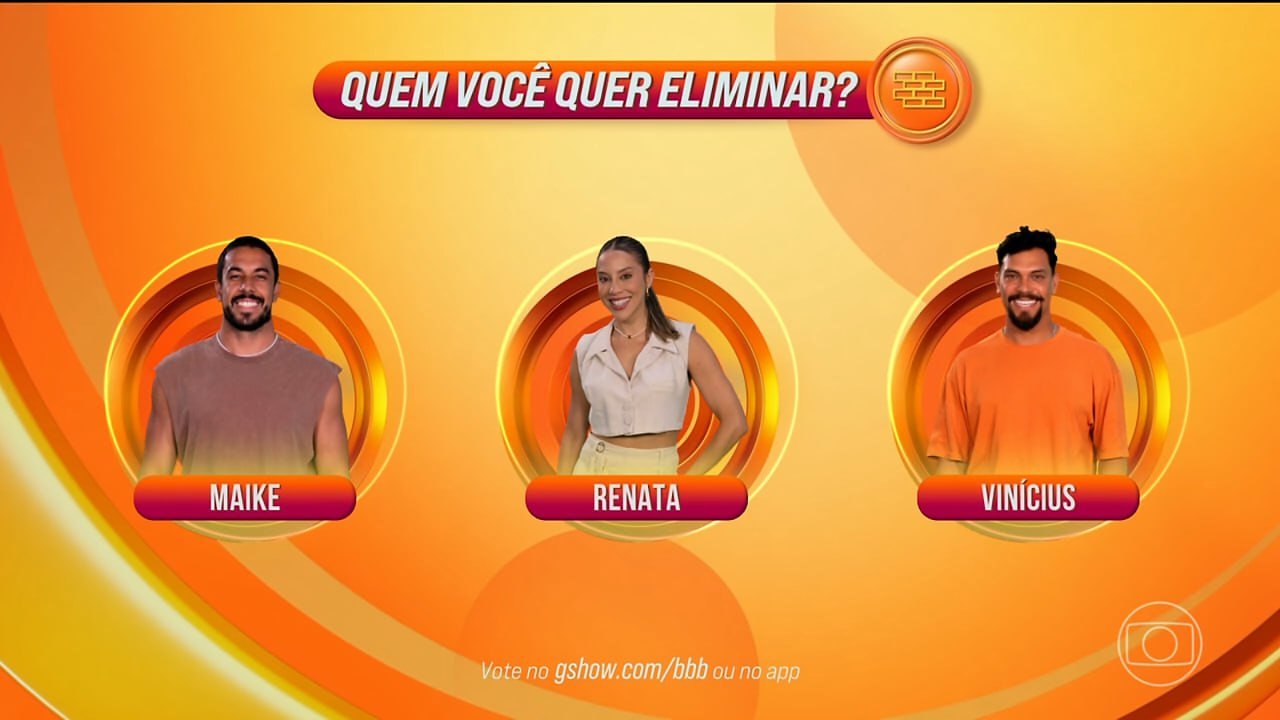Com isso, o Paredão está formado: Maike, Renata e Vinícius disputam a permanência na casa e dependem agora da decisão do público.