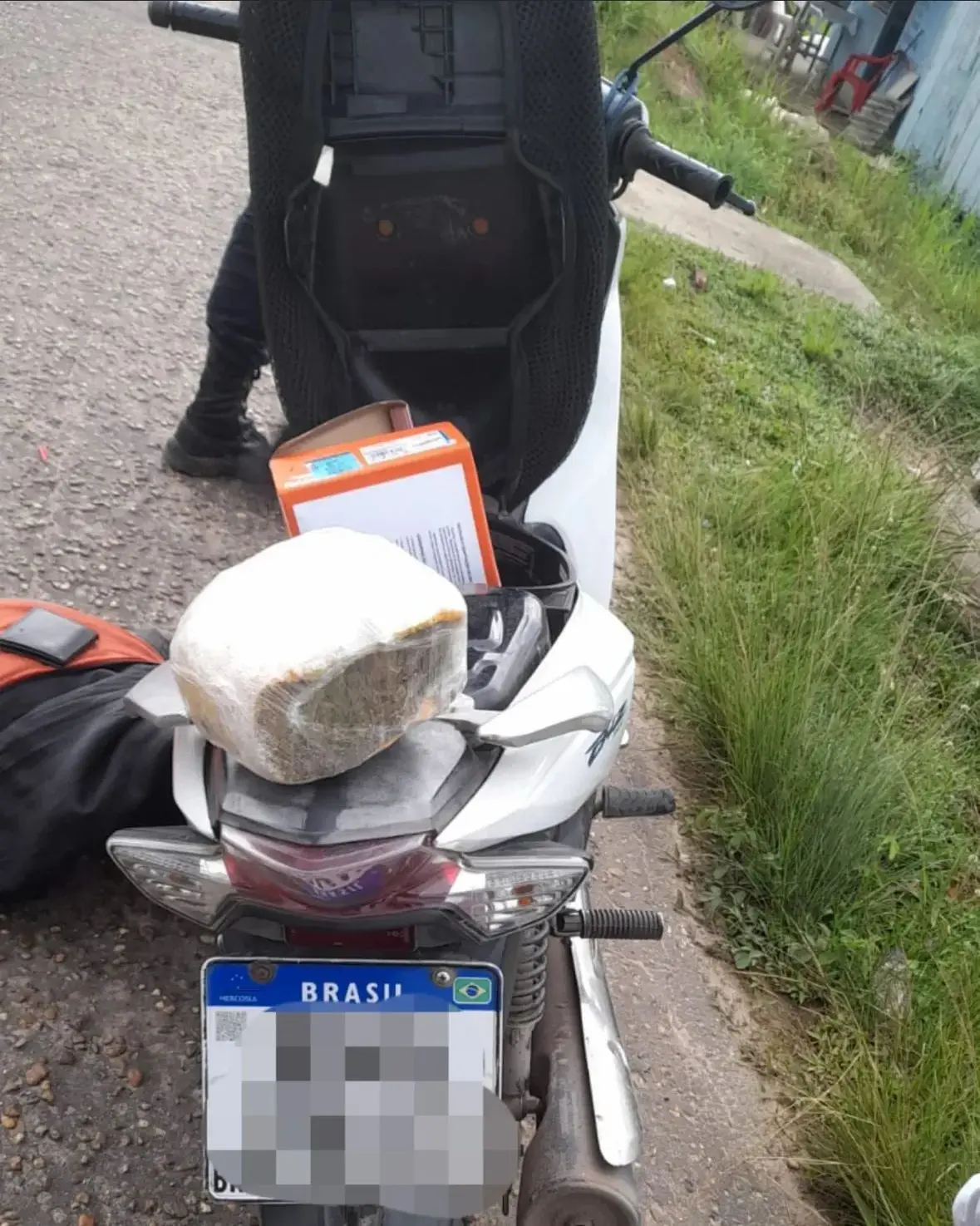 A motocicleta utilizada pelos suspeitos também foi apreendida, e ambos foram encaminhados à Delegacia de Polícia Civil para os procedimentos legais cabíveis