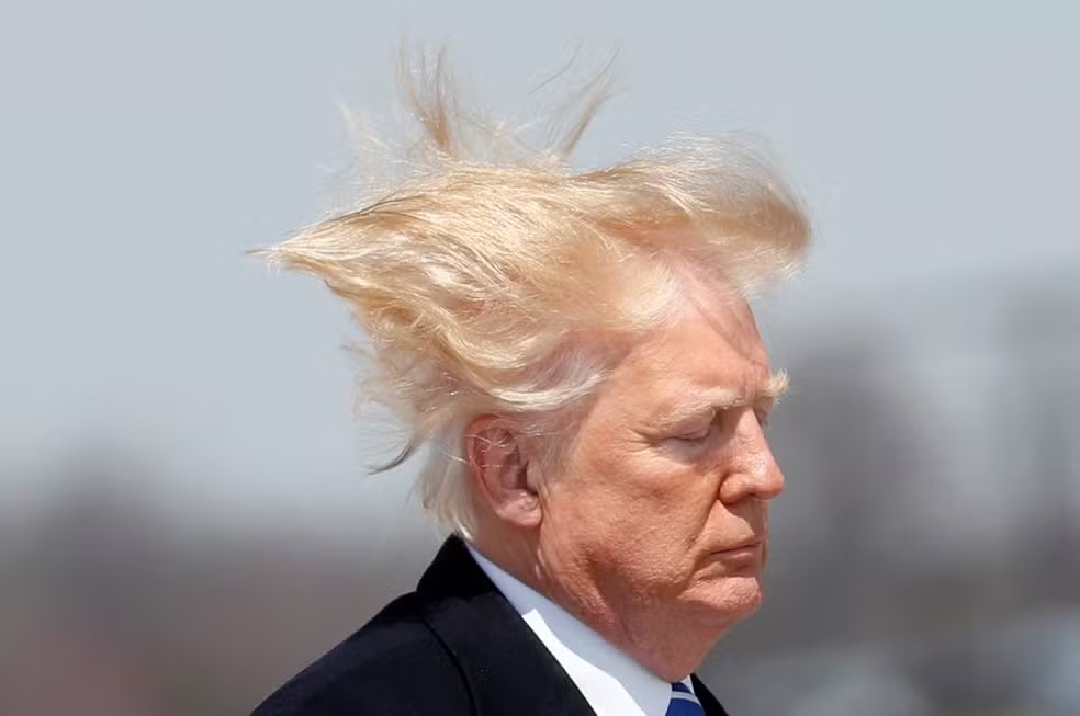 Donald Trump antes de embarcar no Air Force One em um dia com muito vento, nos Estados Unidos, em abril de 2018 — Foto: REUTERS/Kevin Lamarque