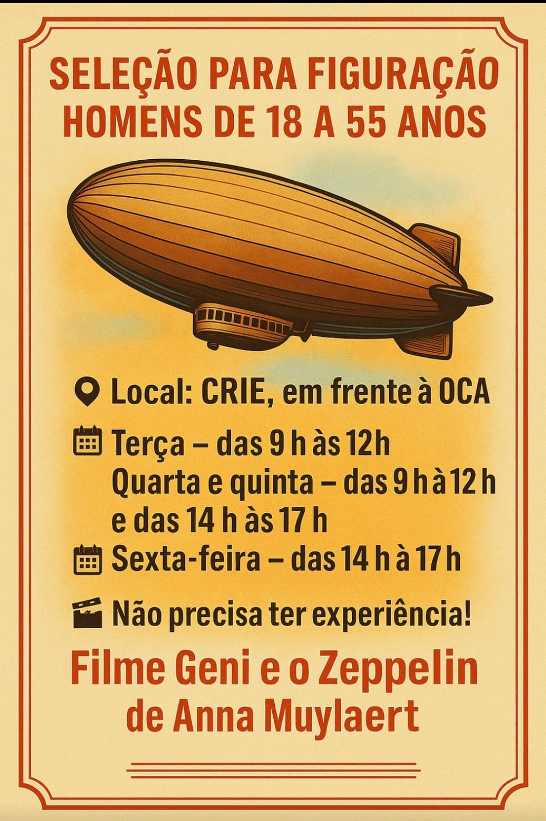A produção da adaptação cinematográfica da icônica canção “Geni e o Zepelim”, de Chico Buarque, que terá suas filmagens realizadas em Cruzeiro do Sul, no Acre, começou, nesta terça-feira (22), a abrir inscrições para interessados em participar da figuração da obra. Os interessados podem se apresentar à sede do Centro de Referência em Inovação para Educação (CRE), na frente da sede da OCA do Juruá, no centro de Cruzeiro do Sul.