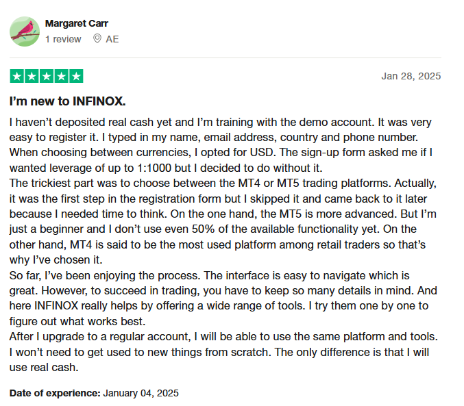 Muitas avaliações da corretora INFINOX destacam sua confiabilidade e experiência amigável para o usuário. Abaixo está a opinião de um trader que optou por usar o MT5.