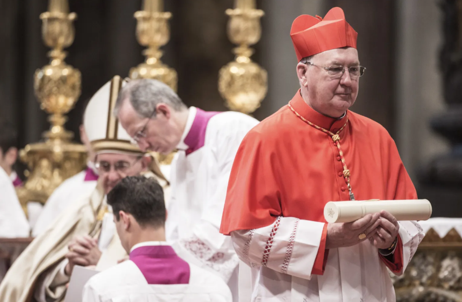 Cardeal Kevin Farrell (de vermelho) é o Camerlengo da Igreja Católica • Alessandra Benedetti – Corbis/Corbis via Getty Images